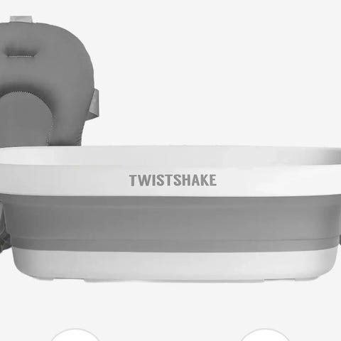 Twistshake babybadekar med sammenleggbart design og grå badekarpute. Badekaret er laget i plast og har en hvit og grå farge. Passer til babyer og små barn.