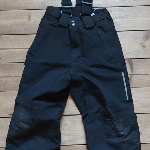 Varm og god vinterbukse/skibukse/utebukse fra Name it i størrelse 110/116. Har seler og en lomme på høyre bein. Praktisk med glidelås og strikk nederst.