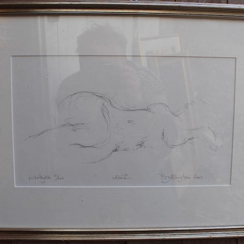 Ridley Borchgrevink Tegning av hund signert