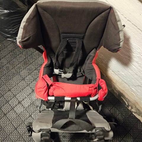 Ser ubrukt ut, og kun brukt i nærområdet et par ganger. Stabil og god men fotfeste til barnet.