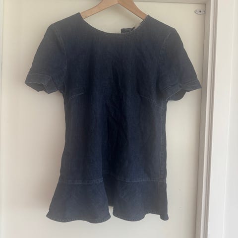 Chloés indigoblå topp er laget av denim i en bomullsblanding, som er rynket, plissert og presset til en boksete silhuett. Den er produsert i Italia med rund hals, korte puffede ermer og en rad sølvfargede trykknapper. Style den med jeans og loafers med hæl for et elegant antrekk på dagtid.