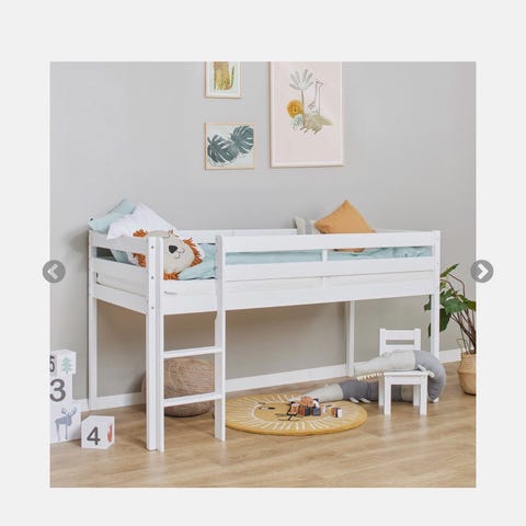 Hoppekids ECO Halvhøy seng. Kjøpt brukt. En del merker og hakk, men den står like stødig og fungerer fint.