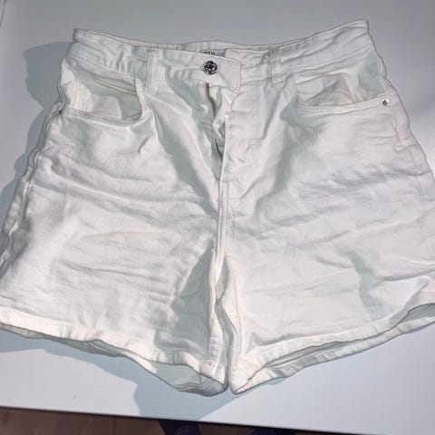 Pen Zara shorts i størrelse M, laget av materiale med paljetter i sølvfarge.