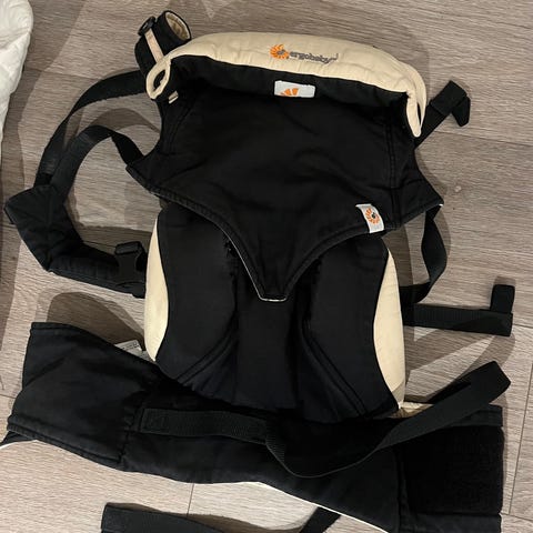 Ergobaby bæresele i grå farge. Designet for å gi støtte og komfort ved bæring av barn. Justerbare stropper og polstret midjebelte for tilpasning til brukerens kropp. Egnet for både menn og kvinner. Den er minimalt brukt av oss.
