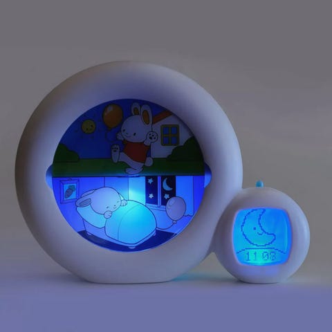 KidSleep Moon er en nattklokke, søvntrener og nattlampe i ett. Med sol- og månevisning, innsovningsfunksjon, vekkerklokke og beroligende lys hjelper den barnet å lære når det er tid for å sove og stå opp.