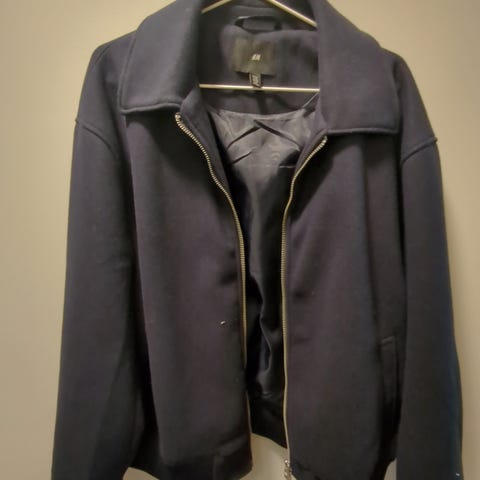Herre ytterjakke str XXL, fra JACK ASHOR, 60 % Ull 15 % Viskose og 25 % Polyester. Foret er 100 % Polyester. Den er vattert, god og varm. Glidelås innerst og knepping med knapper som er skjult bak stolpe foran. 2 lommer foran og 2 lommer med knapp over innvendig pluss en liten ekstra lomme innvendig. Hempe for å henge opp. Jakken er pent brukt. Kr 595,-. Kan sendes.