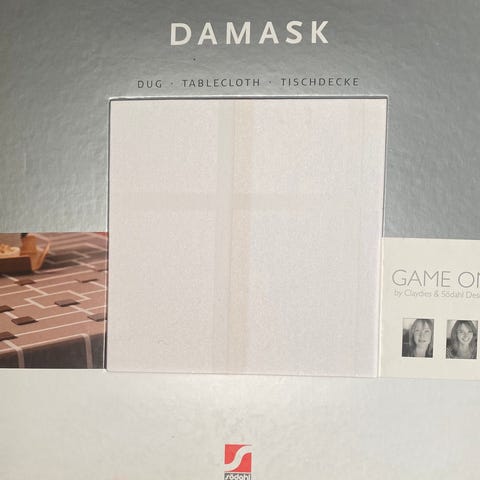Koselig damaskduk, lett å stryke, selges 250,00