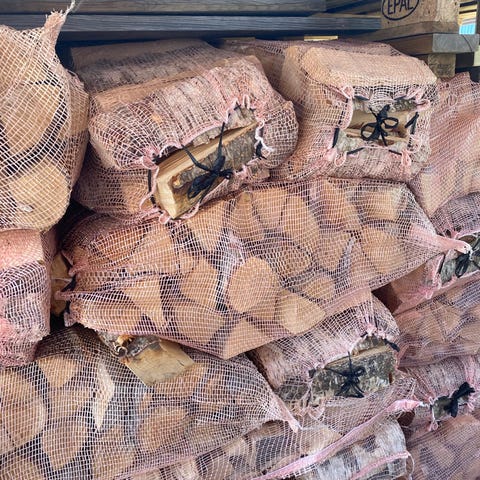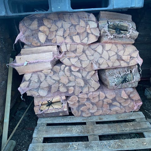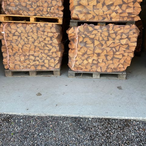 Bjørk og hardved i 60 L sekker. 140 kr.