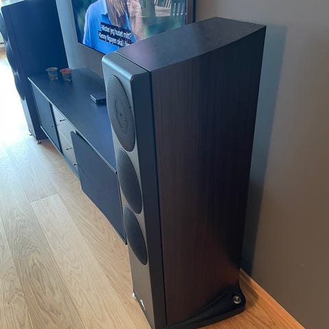 Høyttalerne fremstår som meget pene og er i teknisk toppstand. Jeg er andre eier, port plugger følger ikke med da jeg ikke fikk dem.