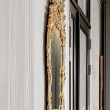 Vakkert stort fasettslipt rokokko gullspeil. Str 150x90 cm