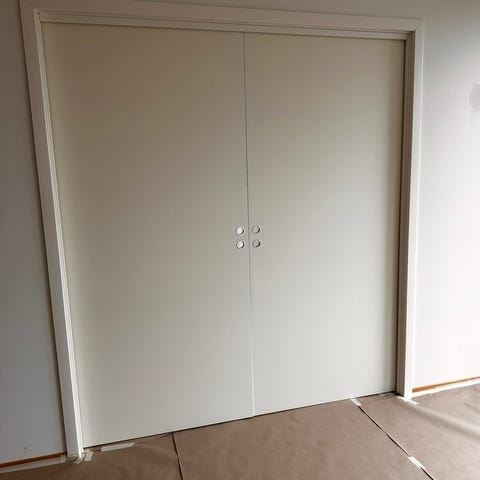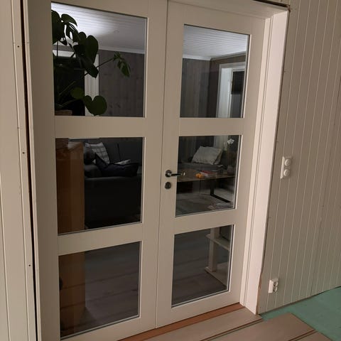 2 stl Swedoor Skyvedør i hvit farge. Dør med enkel design, egnet for bruk som romdeler eller garderobeløsning. Dørene er nye og et tatt ut av dørkarm. Kun dørblad selges.