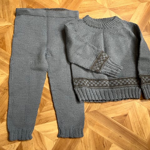 Selger et deilig og varmt sett i ull (som ikke klør) i noe forskjellige størrelser. Kan brukes fra 74-92💙 inkluderer to bukser med føtter, en genser og en jakke