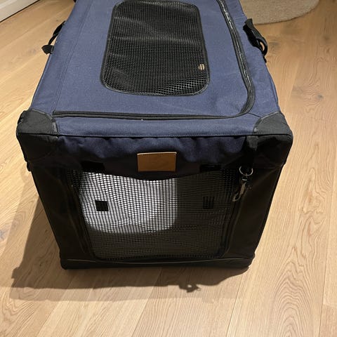 Hundeseng i hardplast. Litt brukt, men stått mest til pynt, hunden foretrakk teppe på gulvet 😄