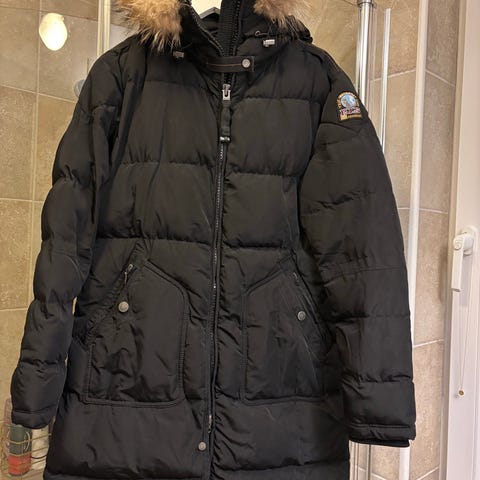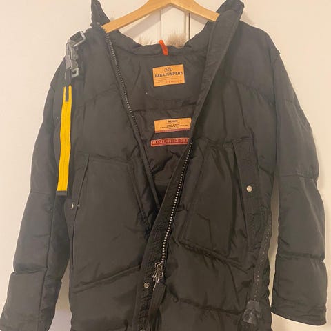 Pent brukt Parajumpers Vinterjakke fra Alpha Industries i størrelse 38 Jakken er svart og laget av polyester/nylon