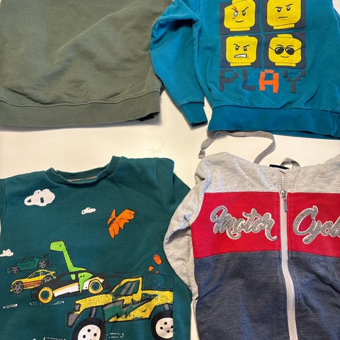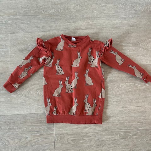Rød genser med glitter, fra KappAhl. Str 122/128. Noe bruksnupper.