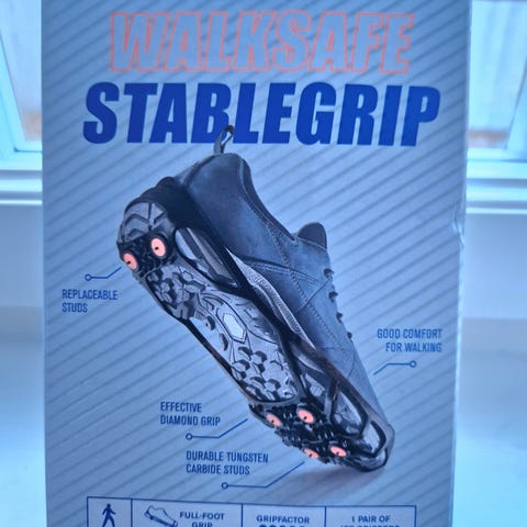 Disse brodder er tatt ut av esken, og prøvd på mine vinter-sko, det vil si,….jeg fikk ikke broddene på skoene.