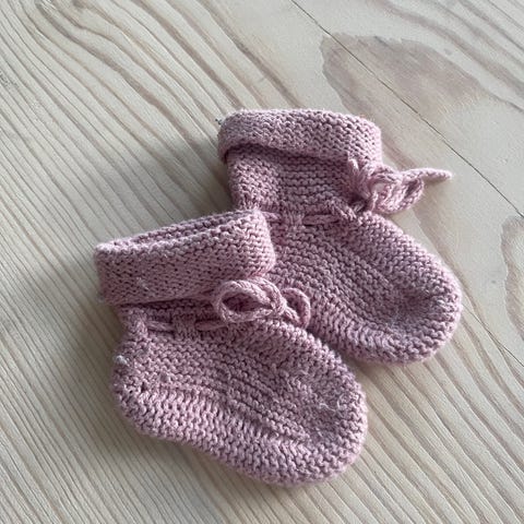 Nydelige grå strikket sokker til nyfødt.