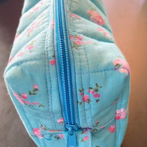 Sminkeveske i quiltet kvalitet. Håndarbeid. Veskene er sydd og foret. Søte som venninnegaver eller bare til å ha som sminkepung i veska di.