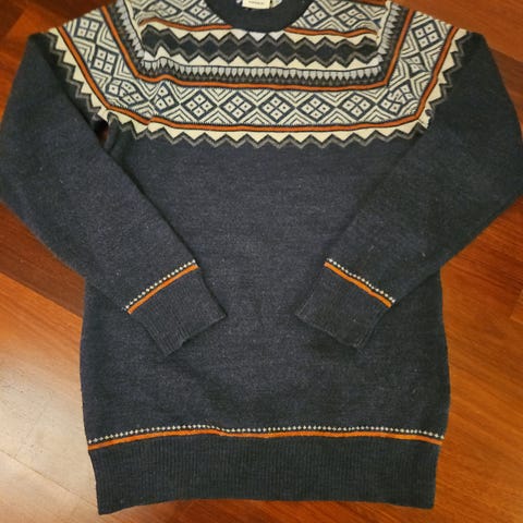 Reima ullgenser i størrelse 122 for gutt. Genseren er blå og laget av ull, egnet for kjølige dager og gir varme og komfort.