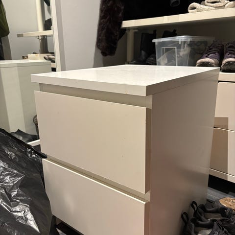 Nattbord fra IKEA gis bort mot henting. Ingen synlige skader og skuffene fungerer som normalt. Medfølger hjul som kan påmonteres.