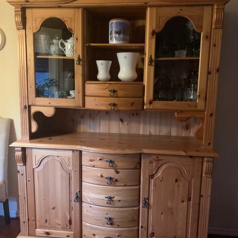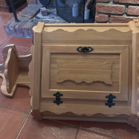 Pent brukt 2 hyller øverst ,skuff i mitten + 1 hylle i det nederste skapet.H194 B ca 93 D 40.