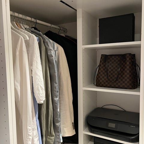 Sjekker interessen for å selge dette eldre garderobeskapet fra Pax / IKEA. Selve skråget er montert av noen andre enn oss og det virker slitt, og skuffene virker å være en eldre modell (men fungerer utmerket). Skapet er delt opp i 2x75 og er totalt 150cm bredt. Det følger med ekstra skuffer inkl skinner, se siste bilder