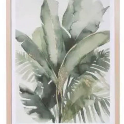 Elegant og moderne kunstmotiv med botaniske former i blå-, turkis- og gulltoner. Bildet har et eksklusivt og rolig uttrykk som passer perfekt i stue, soverom, kontor eller andre moderne interiør.