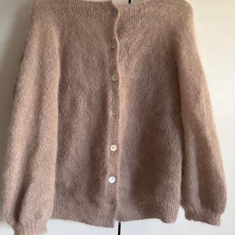 Lett, myk og varm cardigan i ullblanding med 30% ull/mohair og perlemor knapper.