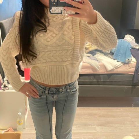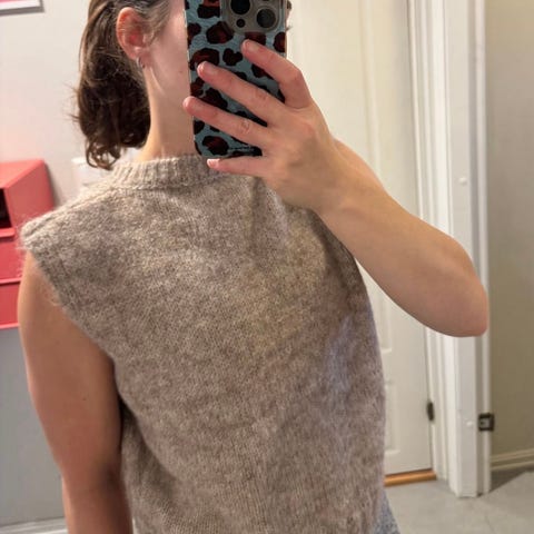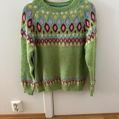 Selges da jeg har for mange strikkegensere og ikke får brukt alle. Fargen er lilla/brun