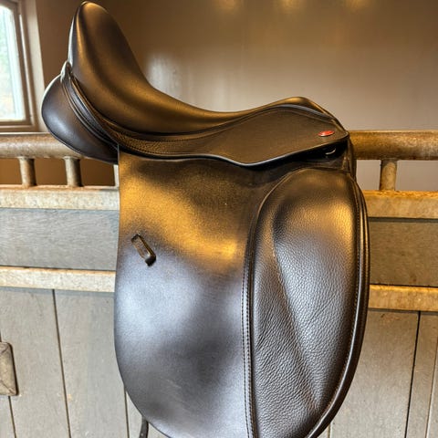 Pent brukt og oppbevart tørt i skap med saltrekk, men noen bruksmerker har den. Der er det litt farge som er slitt bort, men det er ikke hull i læret. Se bilder. Veldig god sal til både tur, bakkearbeid og «hobby-sprang». 17,5 i setet, og relativt kort anleggsflate. Gjordstroppene kan flyttes, det er stor borrelås til flyttbare kneputer, og ullstoppen kan endres noe for å få optimal tilpassing til både hest og rytter. Jeg har et sett puter som følger med.