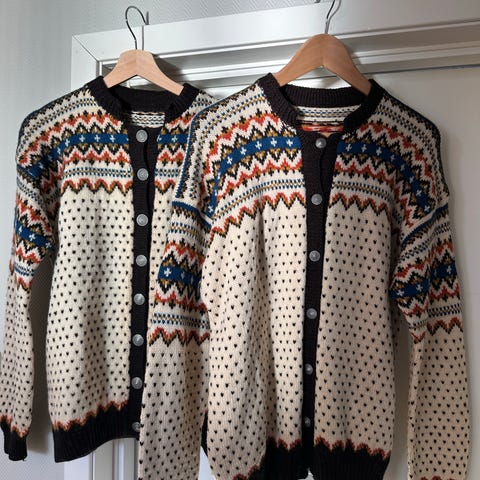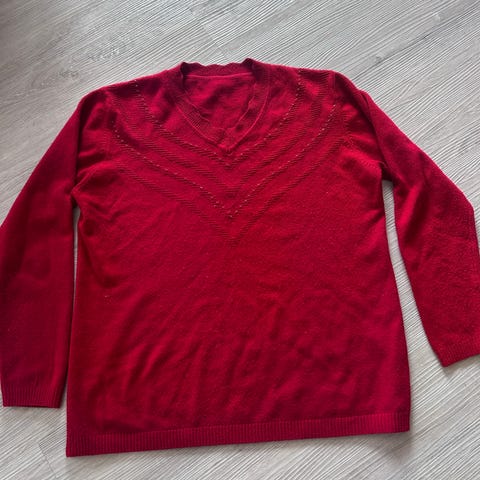 Vintage ull genser unisex. I hvitt og lilla. Fra 90tallet. Str. L. Oversized. Pent brukt, ingen skader. De siste 2 bilder er for å prøve å vise riktig farge.