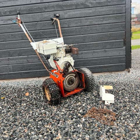Kjettinger medfølger . Startet i november , men får ikke startet den nå . Selges uten garanti kr . 3000 .