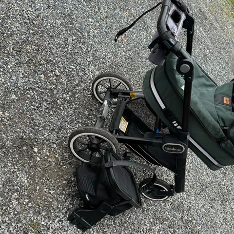 Må hentes. Sender ikke. Alltid stått innomhus. Pent brukt. Få bruksmerker på ramen finns efter ha tagit vognen in & ut ur bilen.
