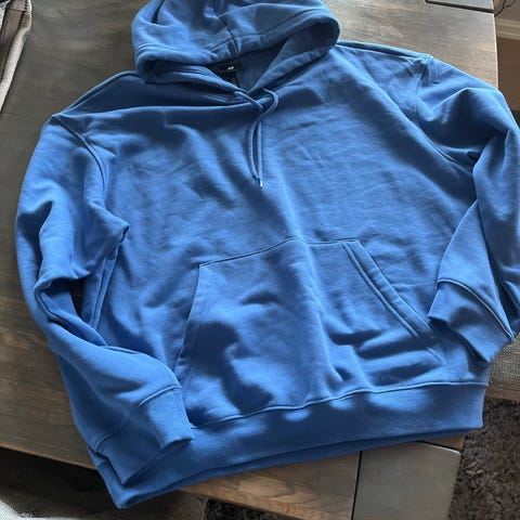 H&M Relaxed Fit hettegenser i grønn farge, størrelse XL for menn. Genseren har hette med snor og kengurulomme foran. Laget for komfort og avslappet passform.