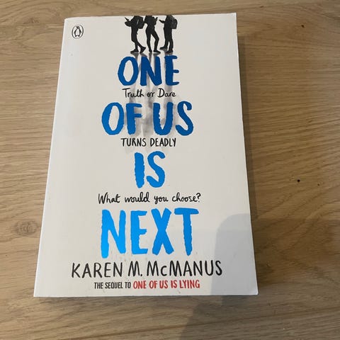 Karen M. McManus One of Us Is Next bok. Roman av Karen M. McManus, oppfølger til One of Us Is Lying.