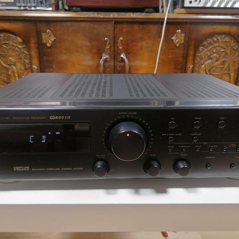 JVC forsterker med flere innganger og utganger for lydtilkobling. Enheten har justerbare kontrollknapper for volum og lydinnstillinger. Passer til bruk med ulike lydsystemer.med normalt bruksmerker testes og virket følger ikke fjernkontrol