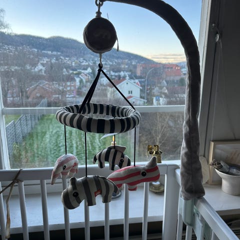Passer fint over sprinkelseng eller vugge, og gir en rolig stemning for baby.