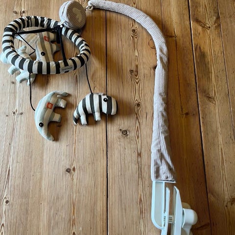 Selger en Done by Deer babymobile i myke, rolige farger.