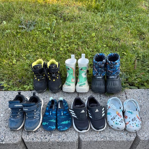 Flere par ev sko i størrelse 20-22. Noe er pent brukt , noe er nesten ny. Skoene er egnet for barn og har et design som passer begge kjønn.