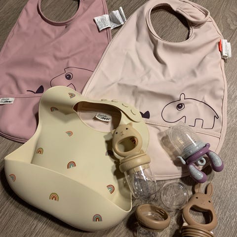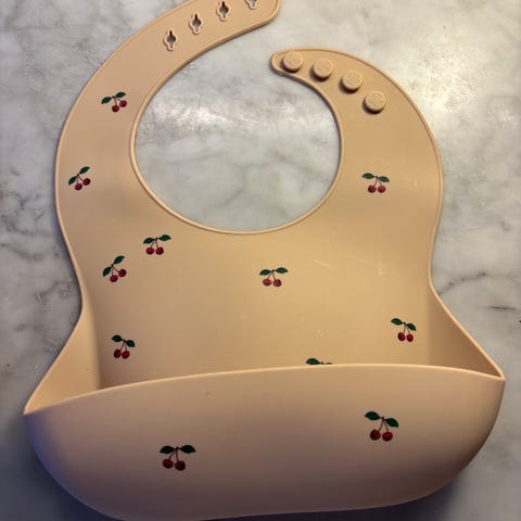 Heldekkende smekke fra Liewood har noe maling på seg som ikke gikk bort i vask, men ellers hel og fin. Med knapper bak. Praktisk og god smekke til babyen som vil spise selv 🥰