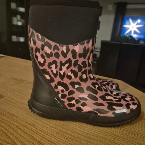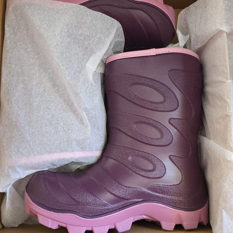 Gode allværsstøvler i gummi fra Norden med varmt tekstilfôr. Fin til slaps og sølevær, på barnehagen og skolen. Behagelig, myk med varmeisolerende neopren i skaftet og fine refleksdetaljer. Rakk bare å bruke de to ganger før de ble for små. Veldig fine både om vinteren i våt snø og på våte sommer og høstdager.