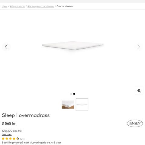 Overmadrass av god kvalitet fra Jensen kun prøvd 1 gang!