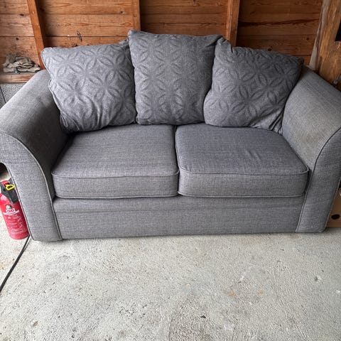 To godt brukt sofaer (2-seters) gis bort og må hentes på Uranienborg i 2 etg med heis. Sofaen er pent bruk men har solskader på ene siden og noen av putene.