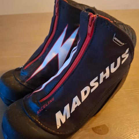 Skisko fra madshus str 31. Vises godt at de er brukte, men har mye bruk igjen.