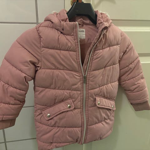 H&M barnepyjamas i fleece, størrelse 110, fargen rosa. Passer for både gutter og jenter. Pyjamasen har hette med dyremotiv og er laget for komfort og varme.
