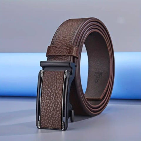 Stilrent brunt herrebeltet med automatisk klikk-/ratchet-spenne. Beltet er trinnløst justerbart uten hull og passer perfekt til egen bruk, både til jobb, dress og pen hverdagsbruk.