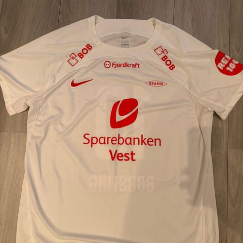 Brann 2024 hjemmedrakt. Dette er en toppserie drakt, med kvinnenes sponsorer. Drakten er en herremodell(altså passform). Drakten har Andrine Hegerberg på ryggen. Trykket på ryggen er ikke det samme som kvinnene bruker, men trykk fra herrenes drakter. Drakten er i størrelse L, men er en slim fit modell.