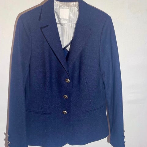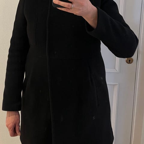 Selger denne fantastiske kåpen/jakken fra franske Comptoir des Cotonniers i str. 42 (tilsvarer norsk str. 40). Materiale; 80 % ull, 20 % polyamid. Lengde 86 cm. Farge: sort (vises best på de første bildene). Med 6 lommer og store fine knapper. Den er kjøpt ny og i fin stand. Selges siden ermene er for smale til meg.