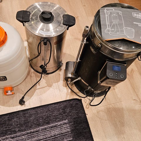 Grainfather G30 Connect selges rimelig. Komplett bryggemaskin med kontroller og motstrømskjøler, koples til telefonen via bluetooth for appstyring. Dette er en helautomatisk bryggemaskin med kapasitet på 30 liter for brygging av 25-liters ølsett. Nye siliconpakninger for ristene som forenkler monteringen. Maskinen og kjøleren er grundig rengjort og klar til bruk. Hentes på Skøyen (Oslo) eller sendes på kjøpers regning, kan sendes fix/ferdig hvis ønskelig.