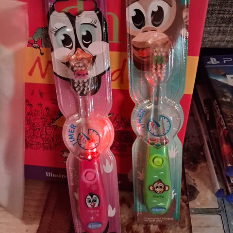 tannbørster i en 3-pakk med forskjellige farger. Egnet for barn. Laget for daglig tannpuss. Tre stk